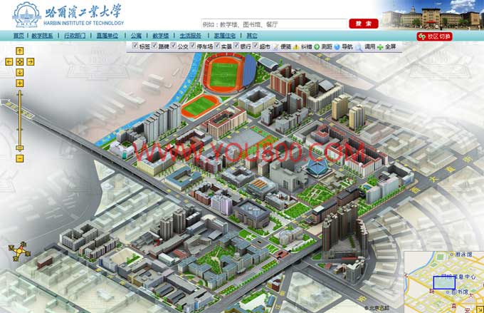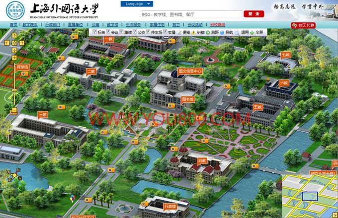 系統支持多個校區的切換,實現各校區之間的快速定位瀏覽。